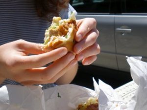 During peak lunch hour, the line extends down the block and if you take a look around, everyone has got this sandwich in hand (well actually, in mouth). Children, friends, co-workers, and lovers young and wise: gather ‘round!