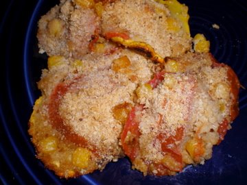 Tomato, Zucchini, and Corn Bake with Cheesy Breadcrumb Topping
