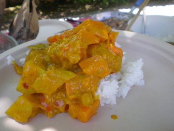 This was a perfect way to get the campers chopping an assortment of colorful vegetables. Plus, they were able to exercise their creativity as they threw in a little of this and a pinch of that. If it looked good, smelled good, and tasted good, it went into this curry! This required no formal recipe—just an imagination and a hearty appetite.