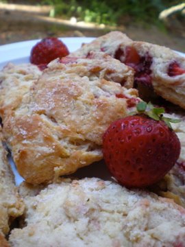 Sunday morning strawberry scones. Finally. I do not have to rush out to work. I can take the morning to bake in my pajamas and slowly sip tea.