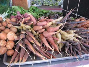 Both Laurel Miller from the Oakland Tribune and I agree on the exquisite: “Rows of sparkling clean lettuces — the Chinos grow 60 varieties — lie next to pristine microgreens and herbs; snowy, baby icicle radishes, purple kohlrabi, burdock root, baby cauliflower in purple and apricot-hued “citrus” varieties; cardoons, red and Thumbelina carrots; warty-looking, dusky blue, hard squash; freshly scrubbed Jerusalem artichokes; Brussels sprouts the size of marbles; and containers of fresh, shucked heirloom shelling beans of every imaginable pattern and hue.”