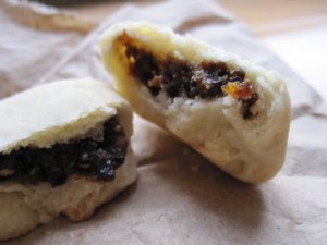 The filling is AWESOME! Better than your typical Fig Newton. It almost reminded me of a Passover “Charoset” sans apples and wine. The texture was on the ball—crunchiness comes from walnuts and the fig seeds, and a smooth sweetness from dates, prunes, honey, and jam. Next time I would roll the dough out thinner to maximize the filling-to-cookie ratio! Mmm!