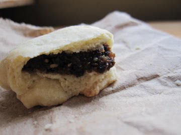 The filling is AWESOME! Better than your typical Fig Newton. It almost reminded me of a Passover “Charoset” sans apples and wine. The texture was on the ball—crunchiness comes from walnuts and the fig seeds, and a smooth sweetness from dates, prunes, honey, and jam. Next time I would roll the dough out thinner to maximize the filling-to-cookie ratio! Mmm!