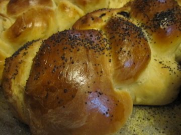 7. Bake in middle of oven for 30 to 40 minutes, or until golden. I like my challah bread served with a sprinkle of salt and some roasted garlic!