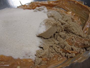 1 cup peanut butter at room temperature (smooth is what we used, but I am pretty sure they use chunky at the bakery)