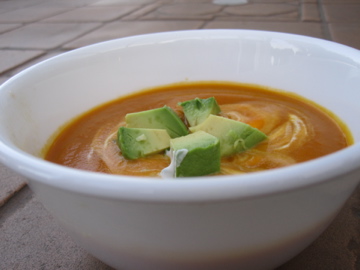 I used dill instead of mint as my herb garnish, but any fresh herb should go nicely. I also chose to top my soup with some cubed avocado.