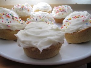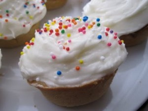 Well, I made some cupcakes. I made some cupcakes with a whopping amount of frosting and of course, with rainbow sprinkles on top. The sprinkles add a nice crunch the the sweet, soft frosting and the mini cake below.