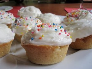 The best cupcake that I ever had: I used to stage (fancy word for intern) at a restaurant in Beverly Hills, CA called Spago. I was staging on the savory side–peeling and mincing garlic and shallots, weighting out chanterelle mushrooms, slicing baby carrots on the vias, and shaving cheese onto freshly made and plated pastas…The chefs were always trying to feed me, I had to taste everything (boy oh boy was this fun!). One day, someone handed me a cupcake. It was a buttermilk cupcake with pink frosting. I had to scarf it down quick because I had to get back to work, but wow. I took a bite of the cupcake, a little cake, a little frosting, all in one bite. Wow. I will forever remember this cupcake. I have yet to re-create it. One day, one day…
