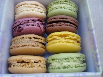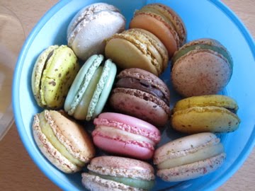 A box of macarons, mini macarons. Assorted flavors. A gift for the wonderful family who I was staying with. Vanilla, pistachio, cassis (black currant), coffee, salted caramel, lemon, dark chocolate.