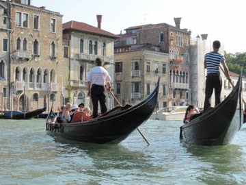 We also took a little gondola ride complete with bubbling Italian champagne (Prosecco) and peach bellinis! Too bad that our boat guide did not sing for us; actually he did seem to enjoy his job very much at all…so much for romantic, eh? Apparently though, these men are the only men who can paddle and steer with one oar standing up. Neat.