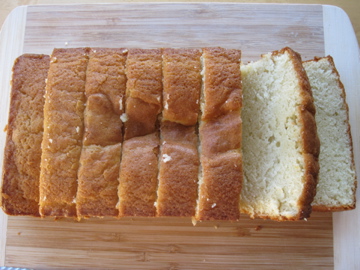 Pour the batter into the prepared loaf pan and smooth over the top. Bake in the preheated oven for about 35-40 minutes (mine actually took slightly longer cooking time), until golden brown and the cake bounces back when touched. Let the cake cool slightly in the pan before turning out onto a wire rack to cool completely.