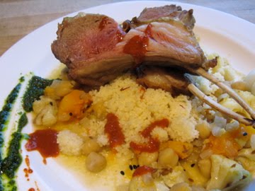 Moroccan rack of lamb with couscous and fall vegetable ragu