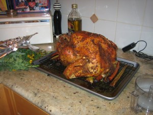 Whoa Nelly! That’s one glistening bird. The tough part is keeping it nice and juicy, a rare occurrence in my family’s home (let’s just say we have been known to make dry dry dry and did I say dry poultry). My mom does know how to cook up some real good red meat, but I will save those stories for another day…