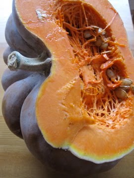 So we’ve had this ridged purple pumpkin living with us since October. Today was the day that I transformed our dear purple pumpkin into some precious puree.