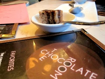 So five of us “dined” at the Chocolate Room. We each got a drink and then shared two chocolate desserts. A flourless chocolate cake with raspberry sauce and whipped cream=dense and dreamy, and I loved the raspberry-chocolate combo.