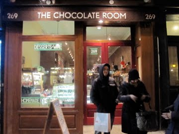 (Above you see brother and mom, post-chocolate indulgence) Nestled next to a quaint movie theater in Cobble Hill, Brooklyn, The Chocolate Room knows how to hit the spot on a cold, snowy day.