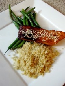 Served on a bed of whole wheat couscous (only takes 5 min. to cook) and sauteed garlic green beans, I’d say this is a beautifully balanced meal.