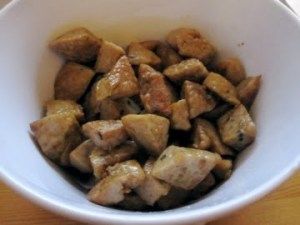 Once browned, I took the sausage pieces out of the pan and set them in a bowl.
