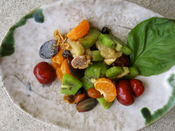 Today I used a fruit combo of kiwi fruit, cuties (aka mini oranges), cherries, banana, grapes.