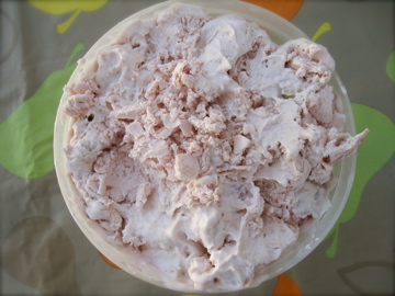 Then you combine your braised rhubarb with some milk and some cream. Let it chill. And freeze in the ice cream maker. OOooo this tastes HEAVENLY. And it is the most precious pink color.