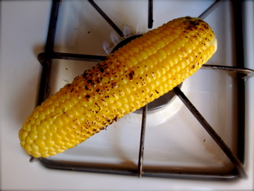 Step 2: Turn on the stove top. Place corn directly over the flame. Let is sit for a few minutes until it pops and hisses. Flip and repeat.