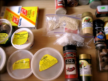 Buying all of these great spices and seeds inspired me to semi-organize my spices. Well, it really started with A Cozy Kitchen. She did a great job organizing her spices and took the time to be creative with her labeling. I decided to put my new seeds and spices into labeled air-tight containers. Then I decided to move all of my spices from the cupboard up high to a pull-out drawer in the kitchen. Ok, so everything is still kind of a mess, but an organized mess nonetheless. At least I can see everything now. Short little me was having a tough time getting on my tip toes trying to see which spice was behind the last in the high shelves.