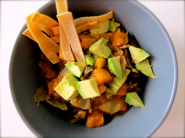 One Response to “Black Bean Sweet Potato Stew with tortilla crispies and avo chunks”