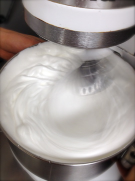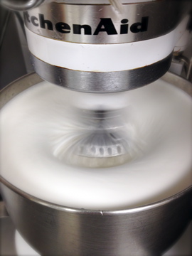 Quickly Quickly Everything in the Mixer: Egg whites get beaten/whipped to a white meringue