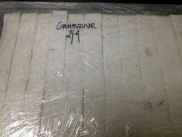 Give the top of the guimauve a little dose of potato starch (or corn starch) and a flip.