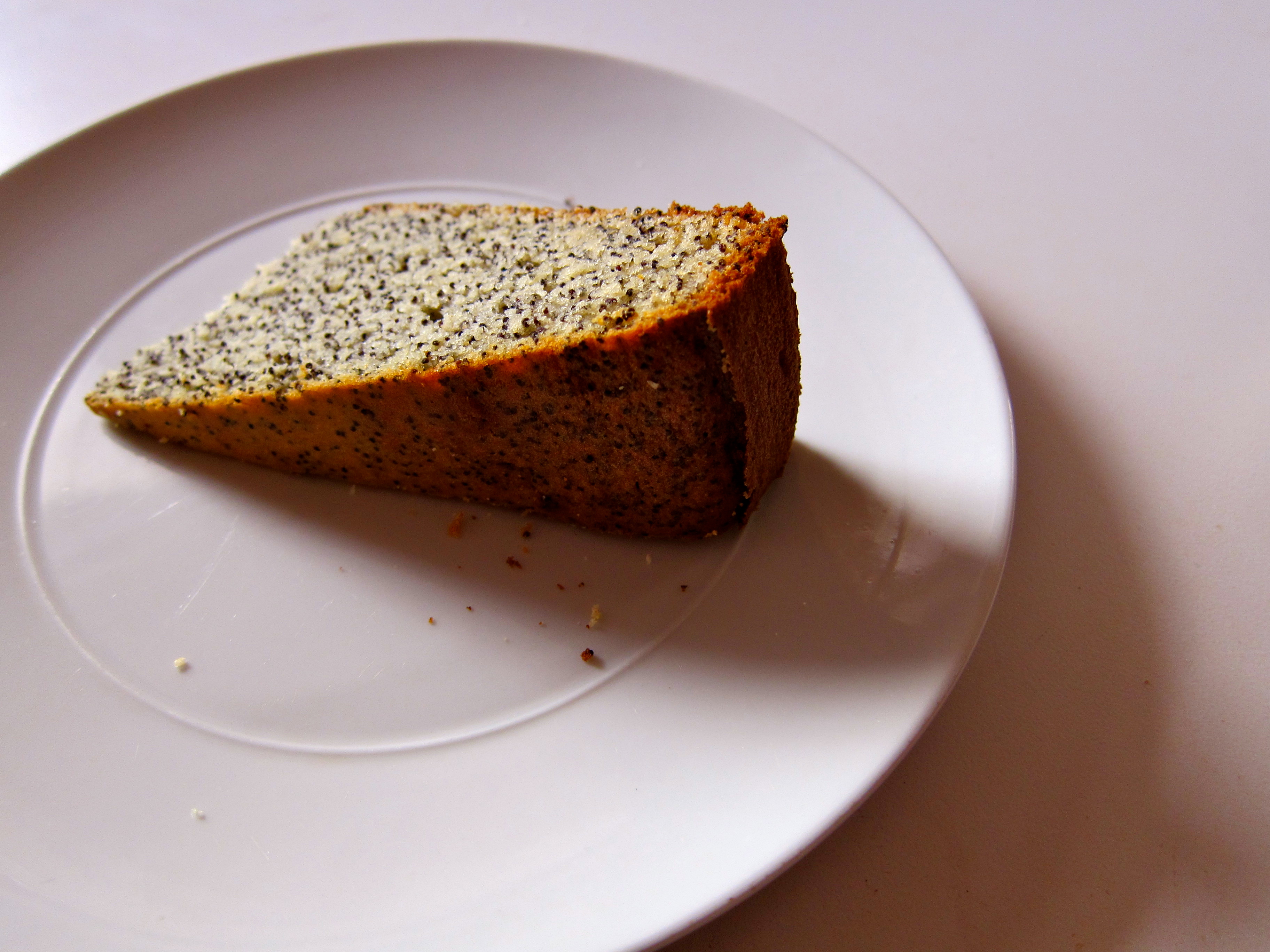 My grandma used to make us poppy seed cake when we were kids. It was a plain cake, with a subtle crunch from the seeds, usually baked up in a bundt pan. Grandma uses canned poppy seeds, but I made this cake with the regular seeds that you can find by the spices at the grocery store. She says that poppy seed cake tastes even better when it’s a few days old.