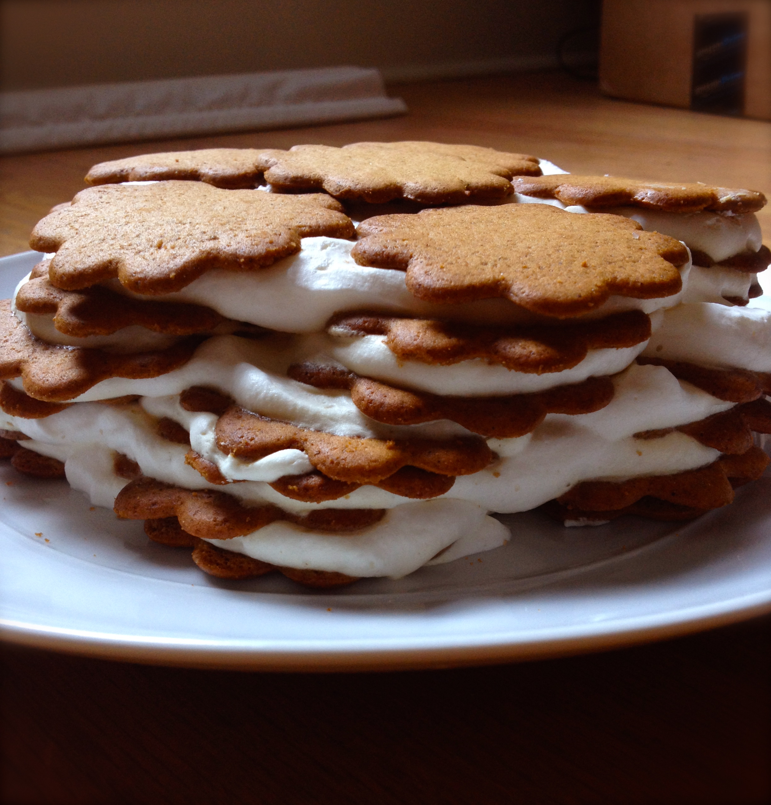 You could mix in some jam between the layers, or some pudding, or Nutella or peanut butter. I just kept it simple with cookies and cream. Ginger cookies felt right for the season.