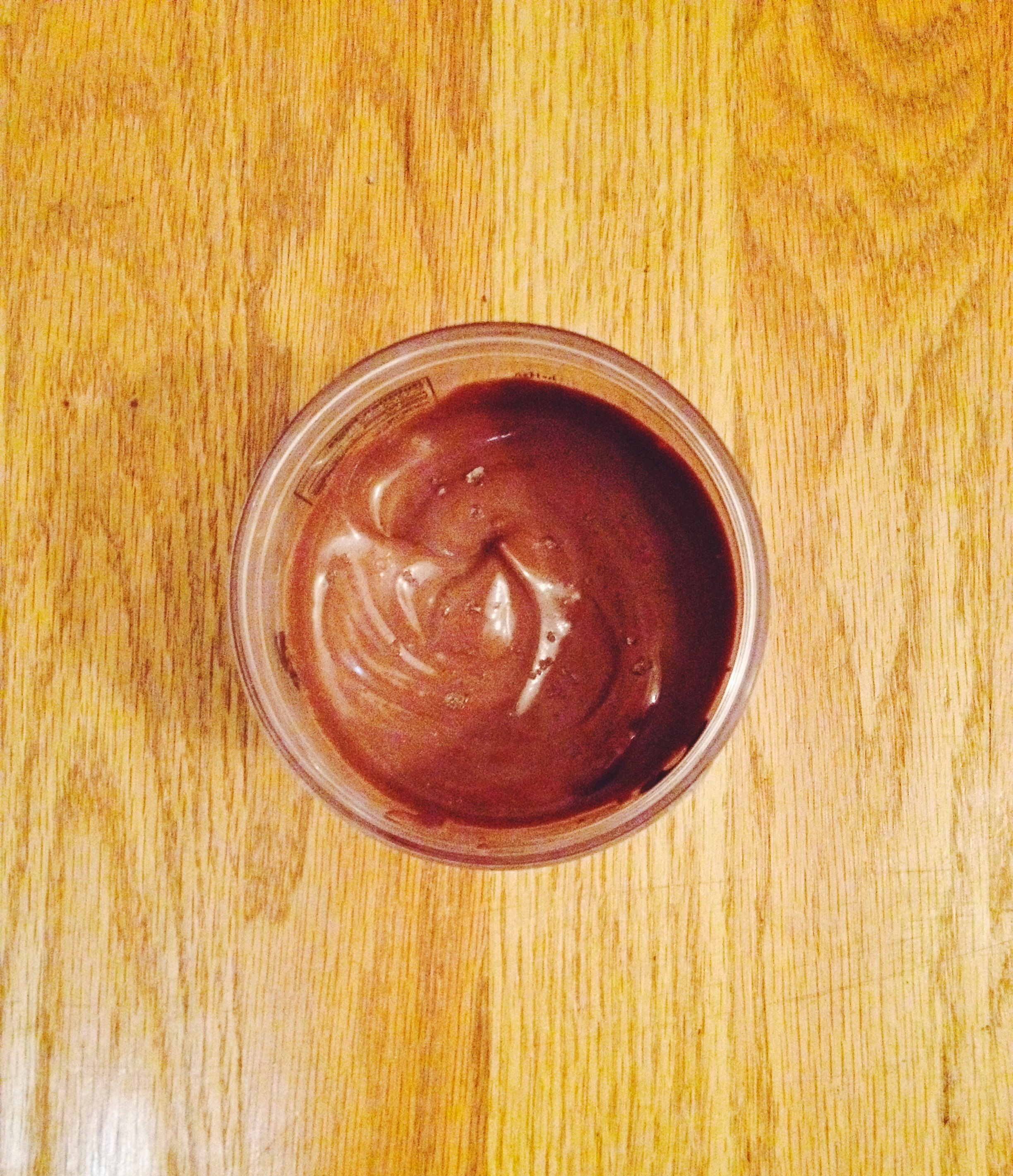 Brownie points: protein from the tofu, sweetness (and possibly antioxidants, depending who you talk to…) from the cocoa, and healthy fat/fiber/protein from the peanut butter.