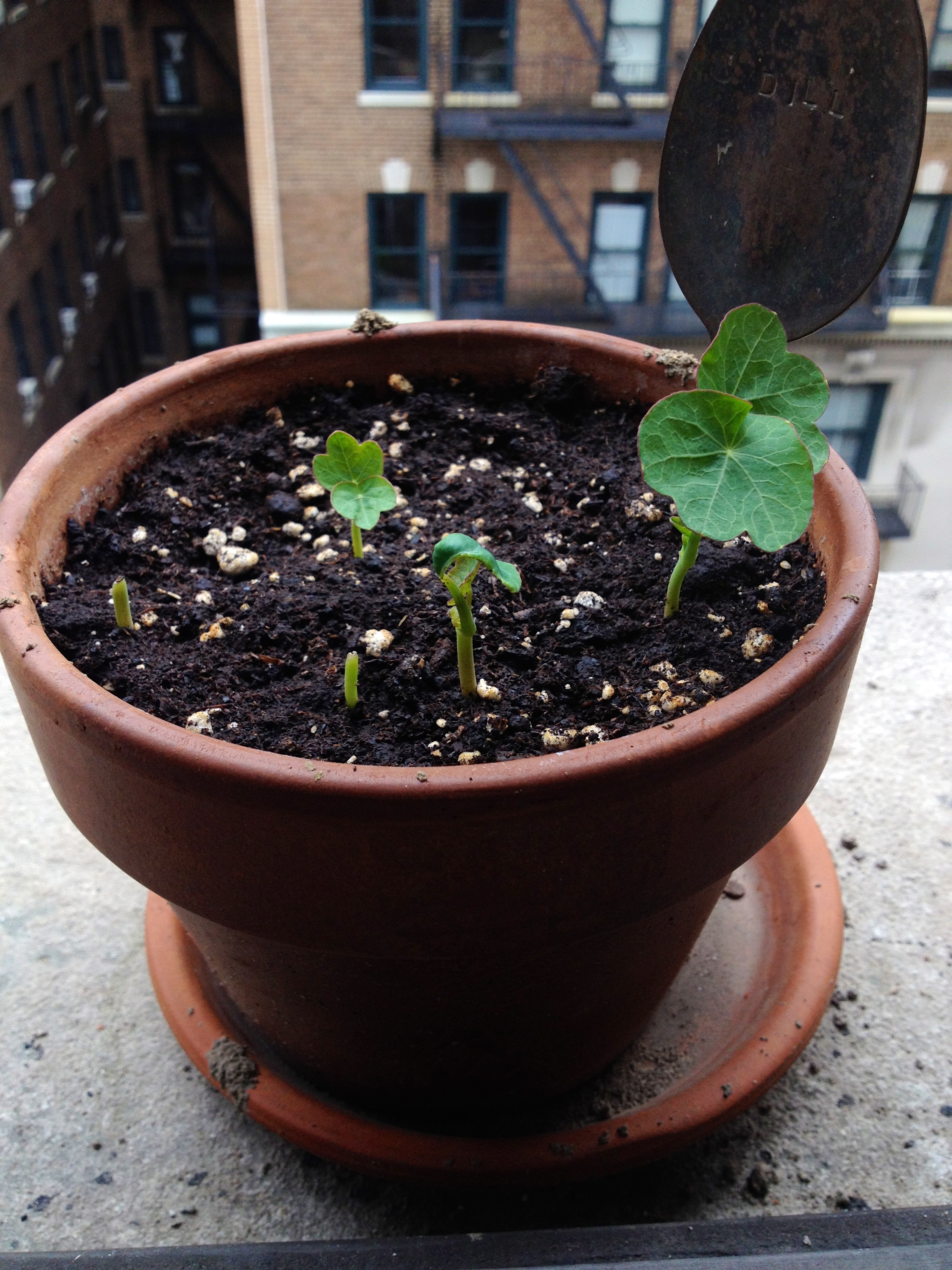 Edible flowers are fun to eat and beautiful to photograph, so we planted nasturtium seeds with the intention of eating them at the final session. I took a few seeds home to plant, too! If you have never tasted an edible flower, the flavor and texture are similar to a slightly peppery lettuce leaf.