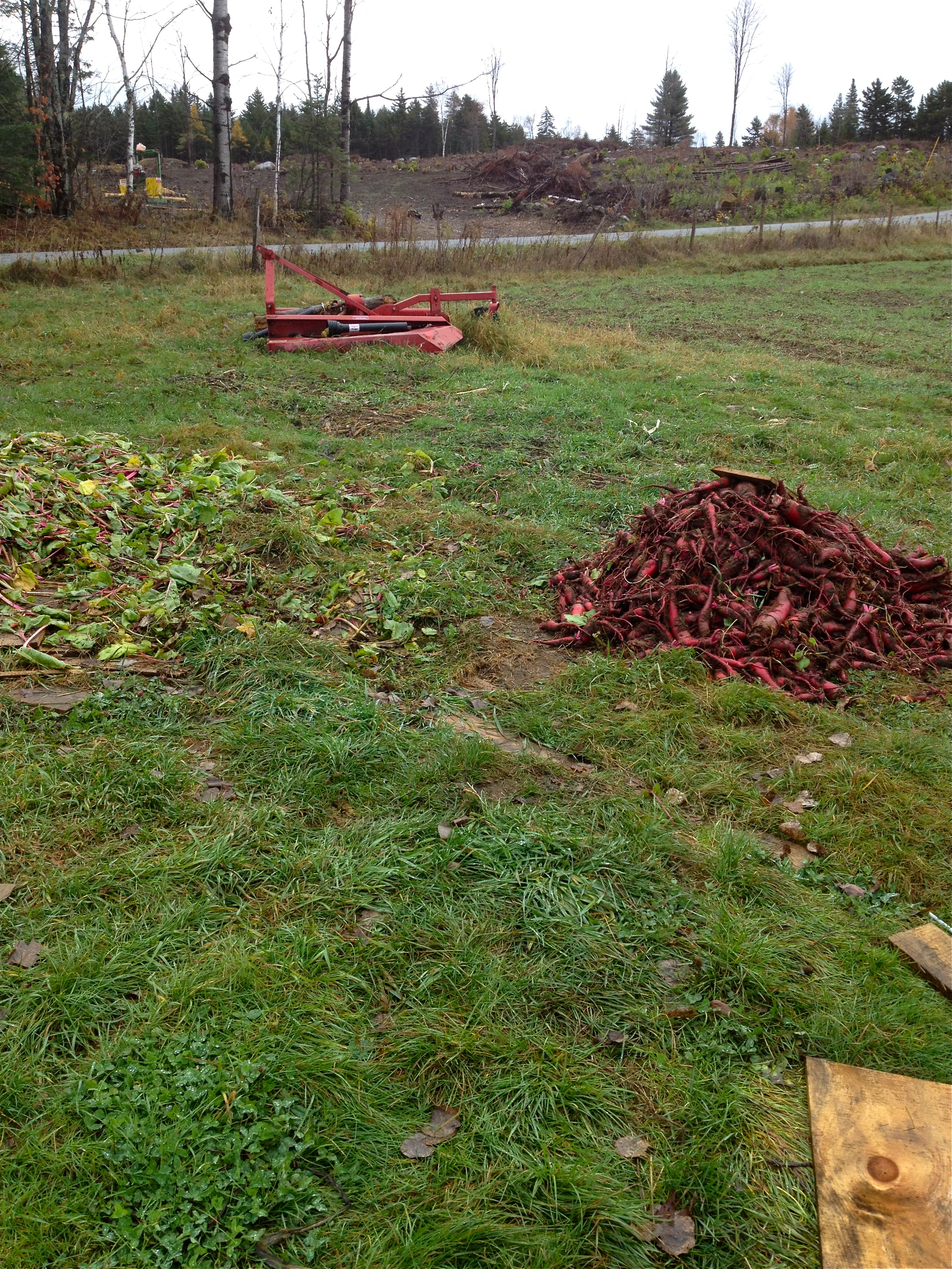 These are mangel beets. The beet tops get used to feed the pigs, and if I remember correctly, the mangels are also being used for whiskey and drink experimentations.