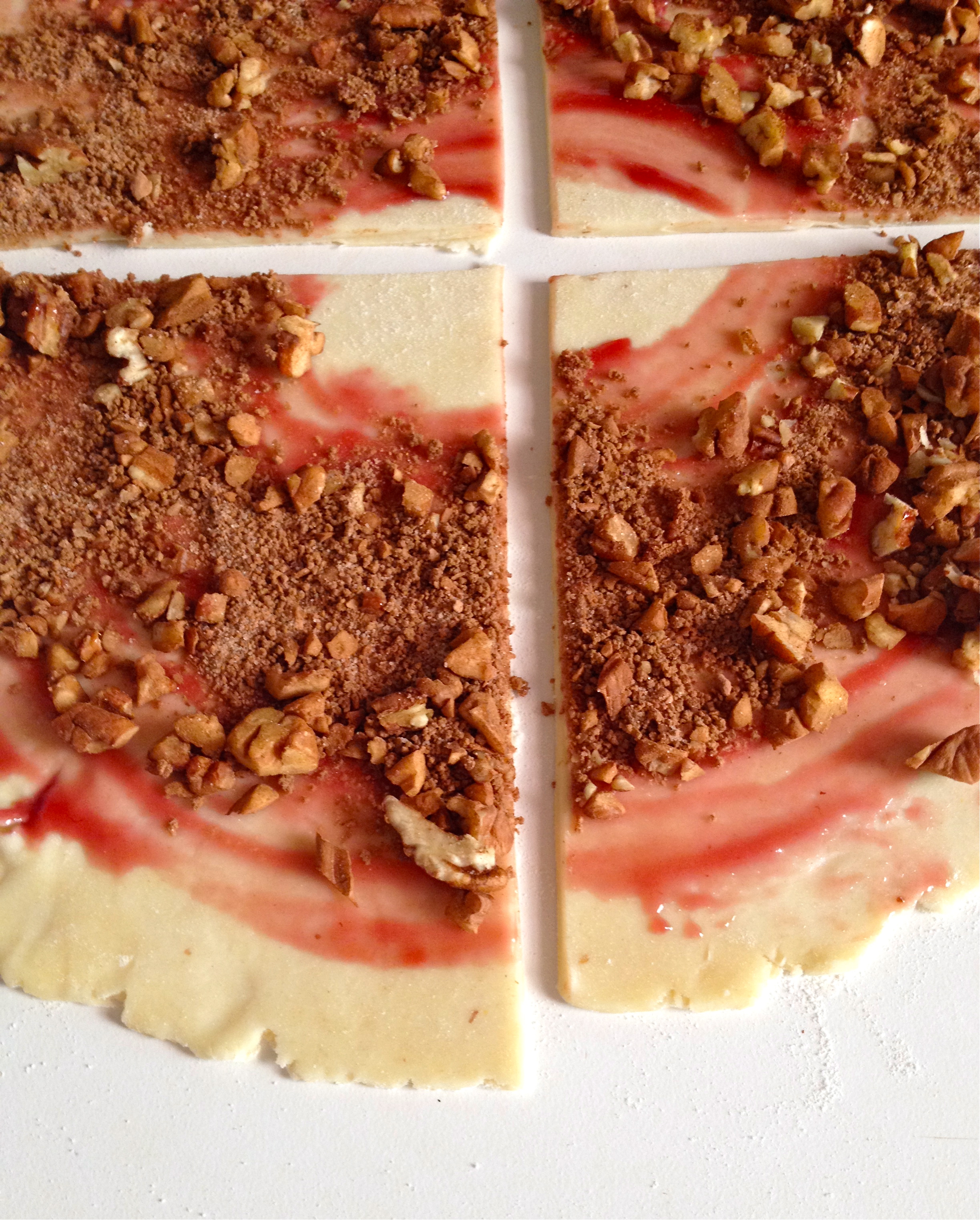 So, three months later, I finally pulled the rugelach dough from the freezer, placed it in the refrigerator to thaw, and set to work rolling, filling, and shaping the cookies. I have been known to keep pie doughs and pizza doughs and apparently rugelach doughs in my freezer for months on end, which is not ideal or recommended, but hey, they always turn out tasting dang good.