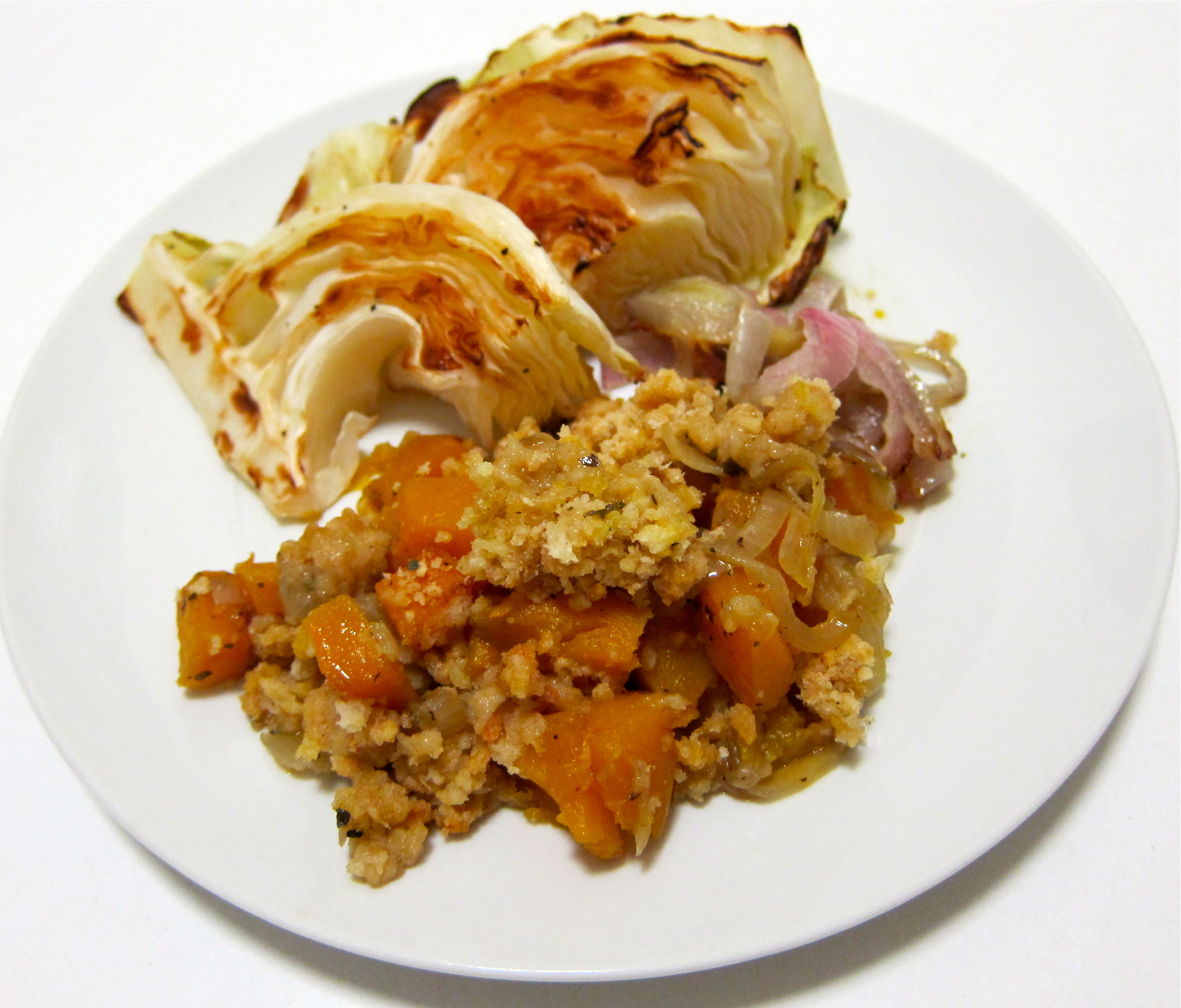 I served the crumble with roasted green cabbage. I think roasted cabbage is the new kale chips? Maybe?