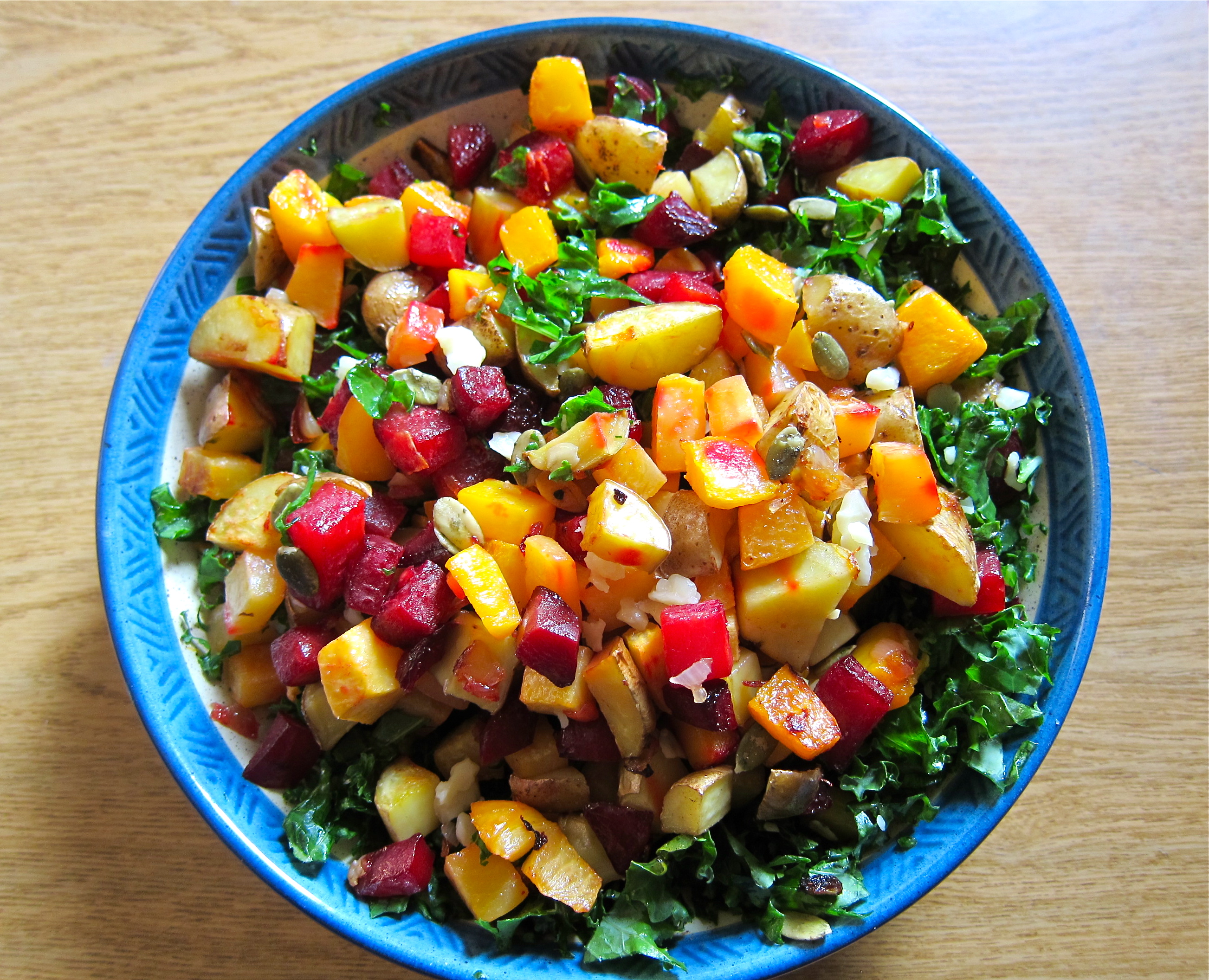 I then tossed the roasted roots into a kale salad for a colorful, hearty and balanced lunch. Thanks for the inspiration, Miranda!