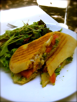 Food was growing everywhere I turned–there were sunflowers and grapevines, bushes of wild blackberries and strawberries, apple trees and pear trees, even some avocados and figs. But nothing screamed mid-August to me like the fresh basil from the yard, with plump, juicy tomatoes. Gosh, good tomatoes are SO good.