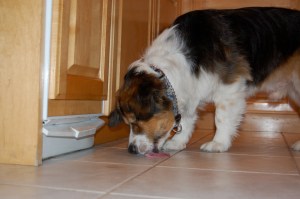 He especially loves to lick sweaty feet and floors. He will just lick and lick, making some pretty grotesque noises as he licks. If ever something happens to drop onto the floor, Finn will be there to lick it up. He knows the smell of peanut butter. Immediately he starts crying if a jar of pb is nearby. He also really likes to stand in front of the warm oven just when I need to open it. But how could I possibly get mad at him for being under my feet and in my way all of the time? He is just so darn loveable. All he wants is love. And when he sleeps, he sticks his tongue out. It’s precious.