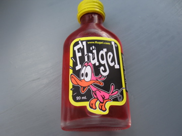 According to this website, “Flugel combines vodka with the taste of black currant and the energy boost of guarana, B vitamins, and caffeine. This “healthy” vodka is currently available in The Netherlands, Belgium, and France. It is targeted to youth partygoers. The tiny 20ml bottle is actually the size of your palm, and could be easily concealed inside a pocket. The Flugel contains 10 percent alcohol by volume.”