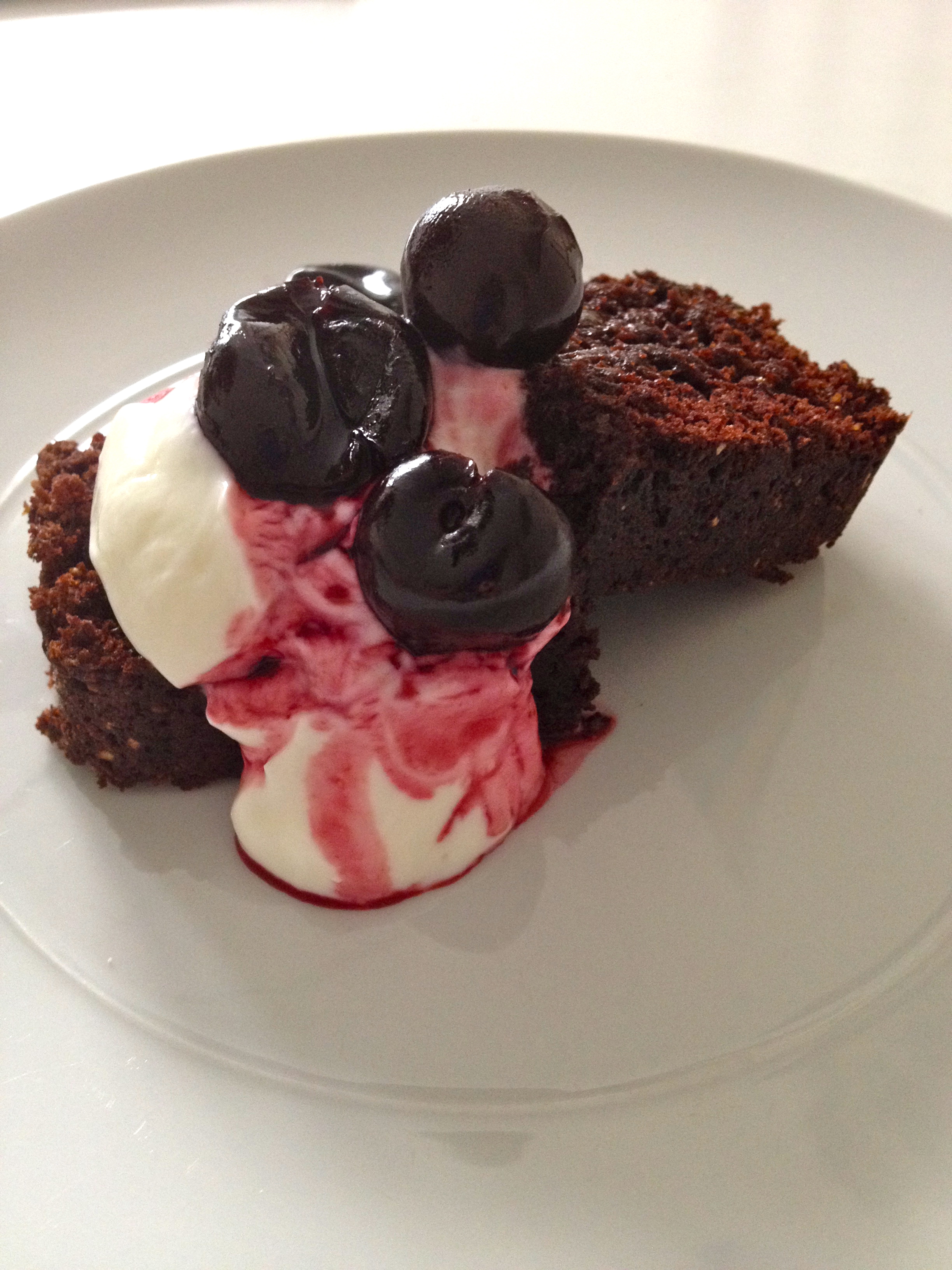Serve with a dollop of yogurt, some warmed cherries, and a glug of chocolate balsamic vinegar (regular balsamic vinegar would work, too).
