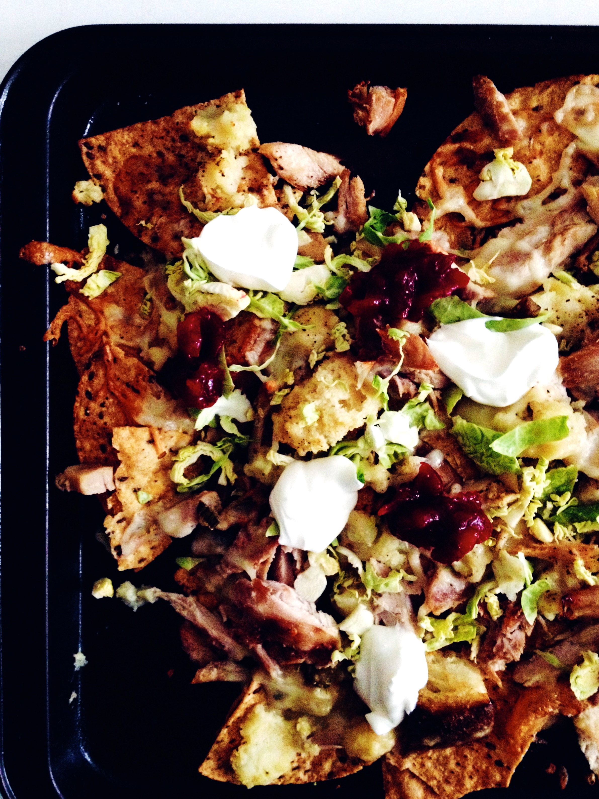 “Leftovers. They’re perfect, really. You’re in the middle of a four-day weekend, the house is once again empty, the kitchen is clean, and all that remains is a giant Ziploc bag full of turkey for you to eat from the fridge in your pajamas. Without leaving the house, you have all you need to make sandwichespot pierisotto, you name it. But what if there were something more? Something even better? What if there were… Thanksgiving Leftover Nachos?”