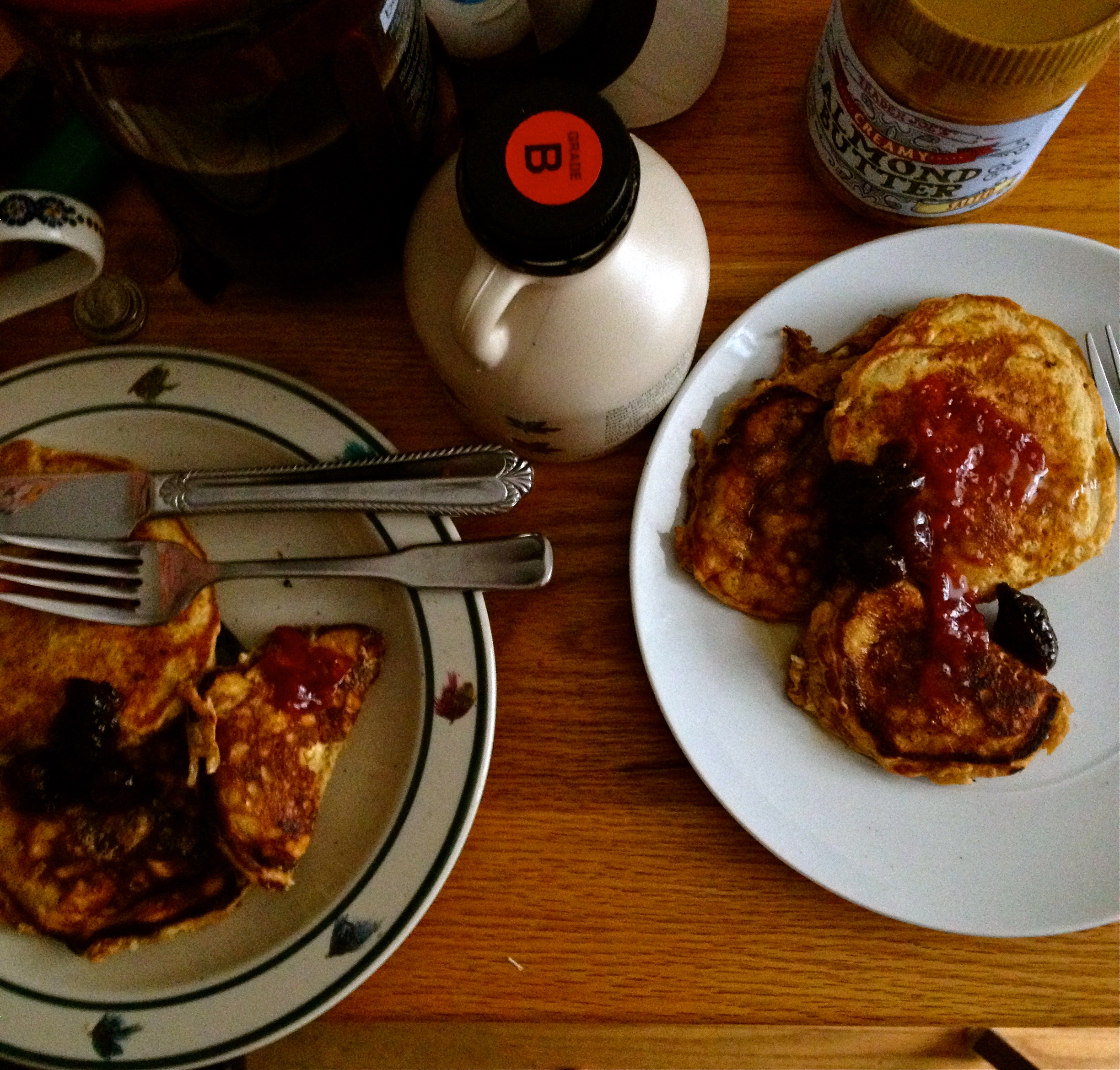 serves 2 (about 3 pancakes each) **if you want more, double the recipe or triple it, etc…
